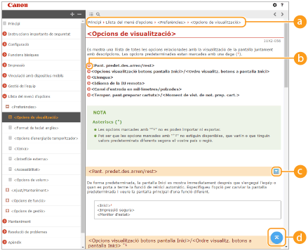 Feu-hi clic per establir els paràmetres per determinar com es mostra l'Guia de l'usuari, com ara la mida o el disseny dels caràcters.