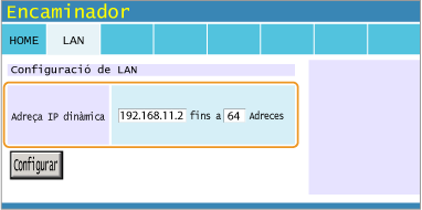 Per saber com visualitzar la pantalla de configuració de l'encaminador, consulteu el manual d'instruccions de l'encaminador.
