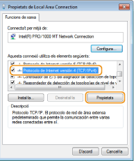 Seleccioneu la casella [Protocol de Internet versió 4 (TCP / IPv4)] o [Protocol de Internet] i feu clic a [Propietats].