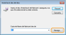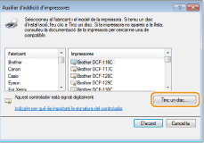Per establir el protocol d'impressió IPP o IPPS, instal·leu el controlador d'impressora mitjançant el procediment a continuació que s'adapti al sistema operatiu de l'ordinador. El controlador de la impressora s'inclou al User Software CD-ROM/DVD-ROM (CD-ROM/DVD-ROM del programari d'usuari) que ve amb l'equip. Inseriu el User Software CD-ROM/DVD-ROM (CD-ROM/DVD-ROM del programari d'usuari) a la unitat de l'ordinador abans de començar el procediment.