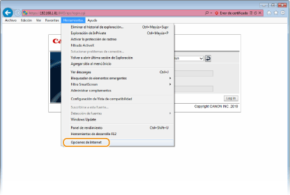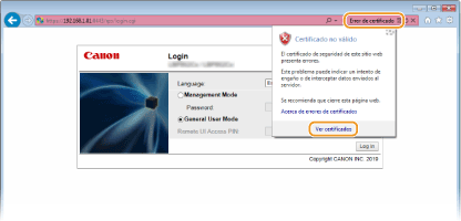 Escriviu "https://<adreça IP de l'equip>/" al camp de l'adreça i premeu la tecla [ENTER].