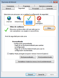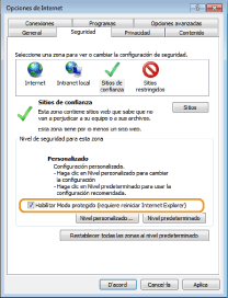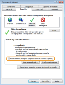 Si heu desmarcat la casella [Habilita el mode protegit (cal reiniciar l'Internet Explorer)] al pas 7, marqueu la casella.