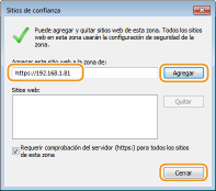 Assegureu-vos que es mostri "https://<adreça IP de l'equip> o <nom d'amfitrió de l'equip>.<nom de domini>/" i feu clic a [Afegeix]