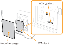 این بخش نحوه نصب کردن کیت پرینت بارکد یا مجموعه قلم بینالمللی PCL در دستگاه را توضیح می دهد. از ROM متصل به رابطهای ROM در داخل درپوش راست دستگاه استفاده میشود. قبل از نصب ROM، اقدامات احتیاطی موجود در نصب را بخوانید.