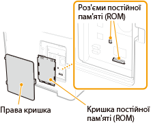 У цьому розділі описується, як встановити в апарат Barcode Printing Kit або PCL International Font Set. Для використання ПЗП підключається до з’єднувачів ПЗП всередині правої кришки апарата. Перш ніж встановлювати ПЗП, прочитайте запобіжні заходи в розділі Встановлення. | ![]() |