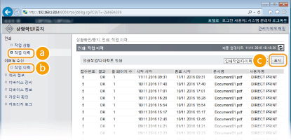 각 인쇄 유형에 대한 인쇄 이력을 표시할 수 있습니다.