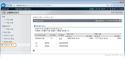 토너 카트리지의 사용 로그를 확인할 수 있습니다.