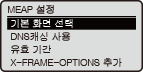 ![]() | MEAP의 메인 화면에 대한 모든 설정이 간단한 설명과 함께 나열됩니다. 기본 설정에는 칼표( )가 표시됩니다. |