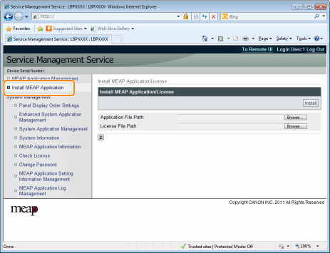 开始下列操作前,请参阅“注意(安装 MEAP 应用程序)”。