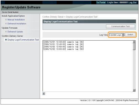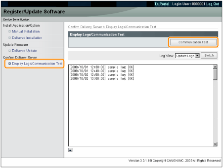 单击 [Display Logs/Communication Test] → [Communication Test]。