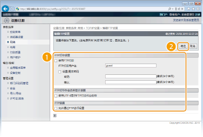 由于出厂默认设置会阻止 FTP 客户端的运行,因此请指定设置以允许操作。