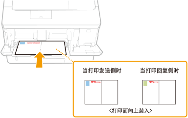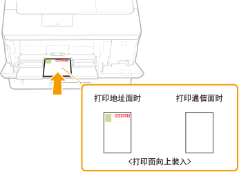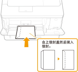 将信封纵向装入(短边朝向本机),非粘合面(正面)朝下。不能在信封背面打印。