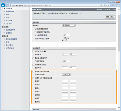 可以配置本机在长时间不使用时自动关闭电源。还可以配置本机以在指定时间关闭电源。这些功能可避免不关闭电源导致的多余功耗。出厂默认禁用此功能。