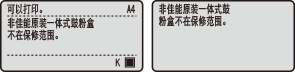 如果显示此消息,可以继续打印,但可能会影响打印质量。否则可能会导致本机损坏。 |