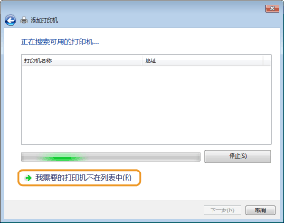 单击 [我需要的打印机不在列表中]。