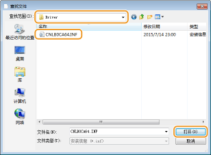 指定包含打印机驱动程序的文件夹,选择 INF 文件,然后单击 [打开]。