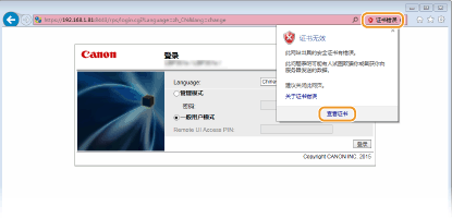 在地址栏内输入“https://<本机的 IP 地址>/”,然后按 [ENTER] 键。
