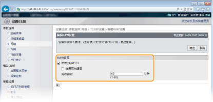 2 | 根据需要配置设置。 ![]() [使用LPD打印] 当使用 LPD 进行打印时,选择该复选框。当不使用时,取消选择该复选框。 [打印LPD标题页] 选择该复选框以在打印件中包含用户和文件名等信息。当不打印这些信息时,取消选择该复选框。 [接收超时] 设置通信错误或一些其他问题导致无法接收打印数据时自动结束打印作业的时间长度。 |
