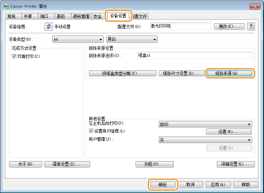 正常情况下,进行打印之前,需要指定各纸张来源中装入纸张的纸张尺寸和类型。