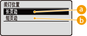 指定是否使用订书机等装订工具装订 2 面打印件的长边或短边。使用