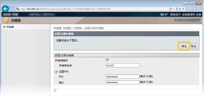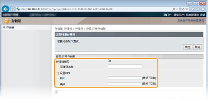可以为存储箱设置名称和打开存储箱的 PIN。如果为存储箱设置易记名称,则可在使用打印机驱动程序选择存储文档的空间时轻松识别存储箱。如果设置 PIN,仅有少数用户可访问存储的文档,从而增加安全性。