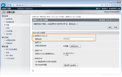 选择 [使用IEEE 802.1X] 复选框,在 [登录名称] 文本框中输入登录名称,然后指定所需设置。