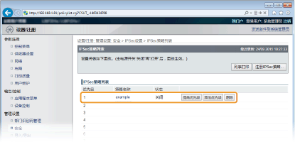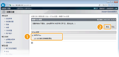 使用操作面板还可以从操作面板设置菜单启用或禁用 IPSec 通信。 IPSec |