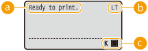 ![]() | O visor mostra o status de impressão e as telas para especificar as configurações. Ele também mostra mensagens de erro e o status do cartucho de toner. |