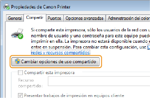 5 | Haga clic en [Aceptar]. Comienza la instalación de los controladores adicionales. Espere a que vuelva a aparecer la pestaña [Compartir]. ![]() Cuando aparece [Control de cuentas de usuario] Haga clic en [Sí]. |