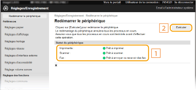 Vérifiez le [Statut du périphérique] pour vous assurer qu'aucune fonction n'est en cours d'exécution, puis cliquez sur [Exécuter].