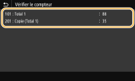 <Service de suivi> Active les communications avec un serveur de contrôle à distance. L'exécution de cette option permet l'envoi périodique d'informations sur l'appareil au serveur de contrôle à distance connecté à l'appareil. <Vér. conf. périph.>Vous permet de vérifier les unités en option installées sur l'appareil. |