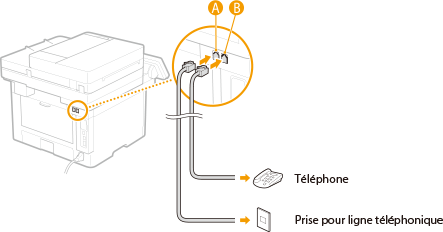 Branchez le câble téléphonique inclus sur la prise pour ligne téléphonique située sur l'appareil (