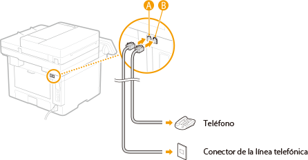 Conecte el cable telefónico incluido a la toma de la línea telefónica del equipo () y a la toma de la línea telefónica de la pared.