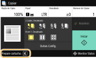 Se uma mensagem for exibida quando a máquina está recebendo um fax/I-Fax, ou quando uma impressão de relatório automática está sendo feita, os faxes/I-Faxes recebidos e relatórios serão armazenados na memória, assim não sairão desbotados depois de impressos. Para continuar a imprimir mesmo se a quantidade restante no cartucho de toner estiver baixa, defina <Continue Imp Qdo Cart Baixo> como <Ativado>. <Continue Imp Qdo Cart Baixo> |