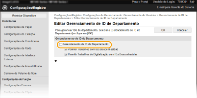 Marque a caixa de seleção para ativar o Gerenciamento de IDs do departamento. Se você não deseja usá-lo, desmarque a caixa de seleção.