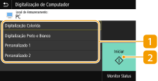 Utilize este botão para iniciar a digitalização. Selecione <Pr/Br> para iniciar uma digitalização em preto e branco. Selecione <Colorido> para iniciar uma digitalização colorida.