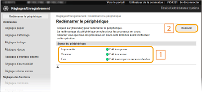 Vérifiez le [Statut du périphérique] pour vous assurer qu'aucune fonction n'est en cours d'exécution, puis cliquez sur [Exécuter].