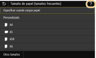 Aparece la pantalla Inicio o la pantalla de opciones, permitiéndole iniciar funciones como el copiado o el escaneado. También podrá utilizar la pantalla para comprobar información como, por ejemplo, mensajes de error y el estado operativo del equipo. La pantalla es también un panel táctil, por lo que podrá ejecutar operaciones pulsando directamente sobre la pantalla.