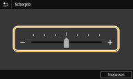 Tik op <+> / <-> en u kunt de instelling van de schaal aanpassen. U kunt ook een instelling aanpassen door de schuifbalk naar links of naar rechts te vegen.