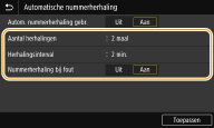 Selecteer <Aan> in <Autom. nummerherhaling gebr.>