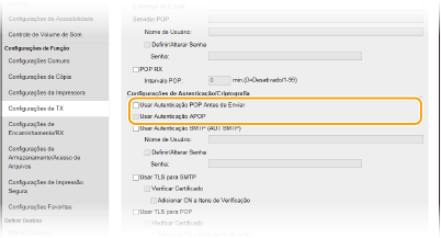 Para utilizar o servidor POP3 para autenticação antes de enviar correio eletrónico ou I-Faxes, selecione a caixa de verificação.