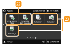 Εμφανίζουν τις αγαπημένες ρυθμίσεις που έχετε καταχωρήσει για τις λειτουργίες αντιγραφής, φαξ και σάρωσης. Προσθήκη πλήκτρων στην οθόνη Αρχική