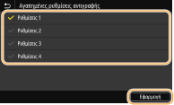 Επιλέξτε το πλαίσιο ελέγχου για κάθε ρύθμιση που θέλετε να εμφανίζεται στην οθόνη Αρχική και, στη συνέχεια, επιλέξτε <Εφαρμογή>.