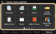 Μπορείτε να προσθέσετε πλήκτρα συντόμευσης στην οθόνη Αρχική για τις λειτουργίες που χρησιμοποιείτε συχνά, π.χ. <Αντιγραφή>, <Φαξ> και <Σάρωση>. Για παράδειγμα, μπορείτε να εκτελείτε τις εργασίες που θέλετε πιο γρήγορα και πιο αποτελεσματικά εκχωρώντας μια σειρά ρυθμίσεων (π.χ. σάρωση και των δύο όψεων ενός εγγράφου, αποθήκευση σε μορφή αρχείου PDF υψηλής συμπίεσης και αποστολή με e-mail) σε ένα μόνο πλήκτρο.