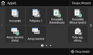 Για ευκολότερη χρήση της οθόνης Αρχική, μπορείτε να προσαρμόσετε τις ρυθμίσεις της. Επιπλέον, για αποτελεσματικότερη χρήση, καταχωρήστε τις αγαπημένες σας ρυθμίσεις στην οθόνη Βασικές Λειτουργίες για κάθε λειτουργία.