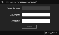 Πιστοποίηση διακομιστή LDAP), η οθόνη σύνδεσης για εξουσιοδοτημένη αποστολή θα εμφανίζεται κάθε φορά που χρησιμοποιείτε τη λειτουργία φαξ ή σάρωσης.
