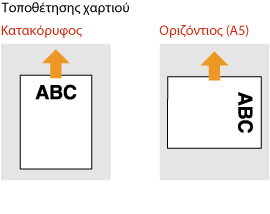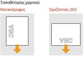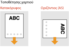 Όταν χρησιμοποιείτε χαρτί με προεκτυπωμένο λογότυπο, προσέξτε τον προσανατολισμό του χαρτιού κατά την τοποθέτησή του. Τοποθετήστε το χαρτί σωστά, ώστε η εκτύπωση να πραγματοποιηθεί στη σωστή πλευρά του χαρτιού με το λογότυπο.