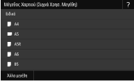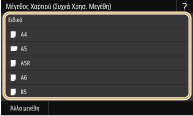 Αν καταχωρήσετε το μέγεθος του χαρτιού που χρησιμοποιείτε συχνά στα πλήκτρα <S1> έως <S3>, μπορείτε να τα εμφανίζετε με το πάτημα ενός πλήκτρου. Καταχώριση χαρτιού ειδικού μεγέθους
