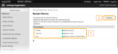 Ελέγξτε το στοιχείο [Device Status] για να βεβαιωθείτε ότι δεν υπάρχουν λειτουργίες σε εξέλιξη και κάντε κλικ στην επιλογή [Execute].