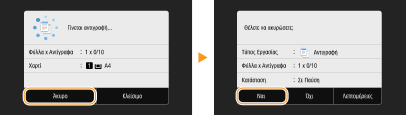 Εάν θέλετε να ακυρώσετε την αντιγραφή αμέσως αφού επιλέξετε <Έναρξη>, επιλέξτε <Άκυρο> στην οθόνη ή πατήστε το πλήκτρο
